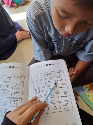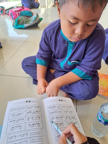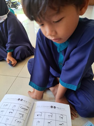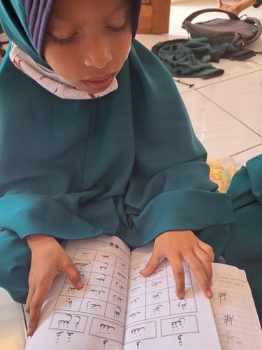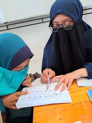 Dokumentasi pembelajaran individu juga memperlihatkan praktik nyata penerapan kebijakan inklusif. Foto menunjukkan tenaga pendidik mendampingi peserta didik secara intensif, memberikan bimbingan individual untuk memastikan peserta didik dapat mengikuti pembelajaran dengan baik, tanpa merasa tertinggal atau terdiskriminasi. Pendekatan ini mendukung terciptanya iklim belajar yang ramah, adil, dan menghargai keberagaman peserta didik.