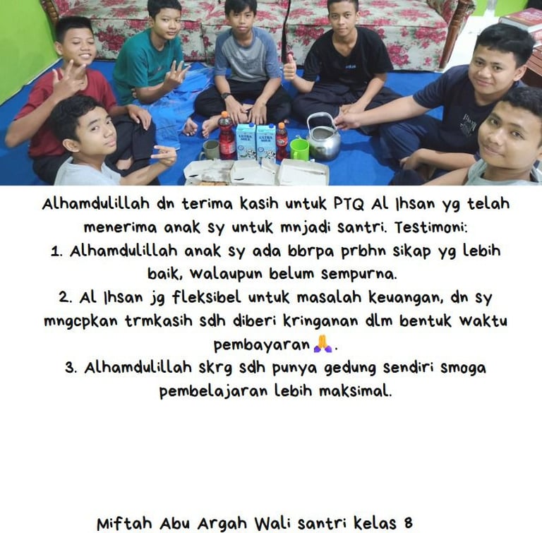 Testimoni dari wali peserta didik menunjukkan adanya apresiasi terhadap suasana belajar yang ramah perbedaan, pendidik yang perhatian, serta lingkungan yang mendukung perkembangan akademik dan spiritual anak.