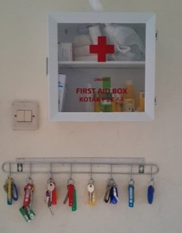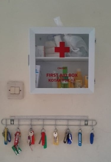 Lembaga telah menyediakan kotak P3K standar yang berisi obat-obatan dasar seperti perban, antiseptik, plester, kapas, dan alat kesehatan ringan lainnya. Kotak P3K ini ditempatkan di ruang yang mudah dijangkau, khususnya di area kantor pusat kegiatan pembelajaran, sebagai langkah awal penanganan terhadap kejadian darurat seperti luka ringan, pusing, atau cedera kecil yang mungkin dialami peserta didik maupun pendidik selama kegiatan belajar berlangsung.