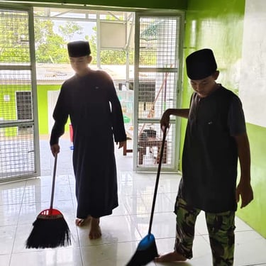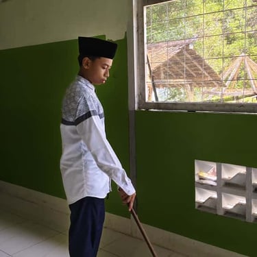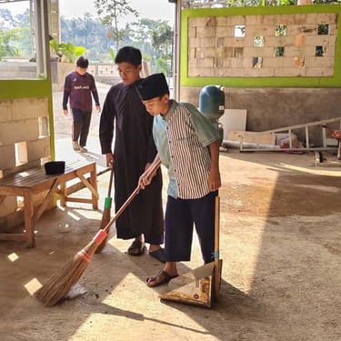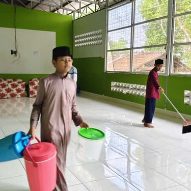 Kegiatan kerja bakti dilakukan sebagai bentuk penerapan nilai kemandirian dan kepedulian sosial peserta didik. Santri terlibat langsung dalam membersihkan area pondok pesantren, jalan lingkungan, serta masjid sekitar yang digunakan untuk Shalat Jumat. Melalui kegiatan ini, santri belajar untuk berkontribusi dalam menjaga kebersihan lingkungan, melatih tanggung jawab, serta menumbuhkan kesadaran bahwa setiap individu memiliki peran dalam menciptakan lingkungan yang nyaman dan bersih. Kegiatan ini juga memperkuat rasa gotong royong serta kepedulian sosial terhadap masyarakat sekitar.