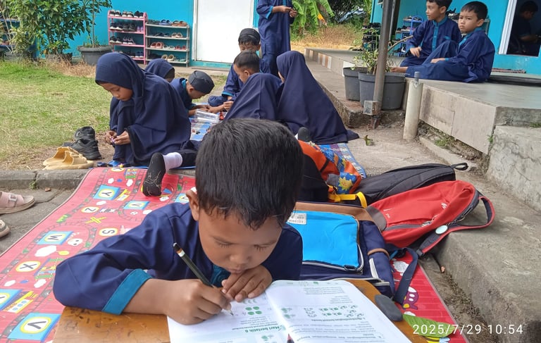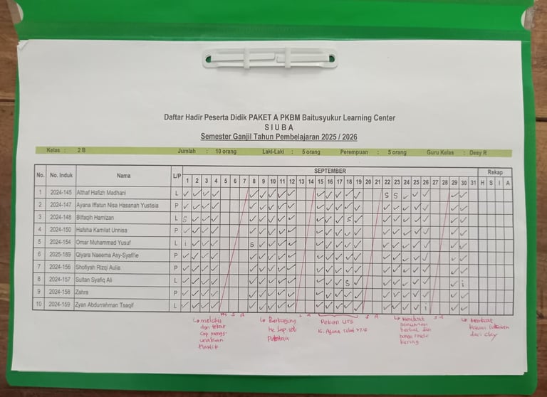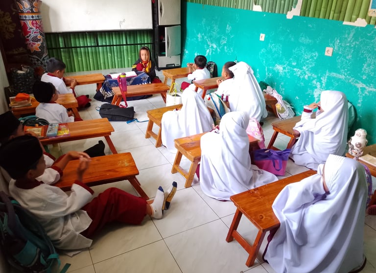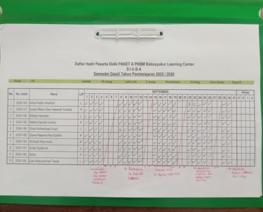 Selama pembelajaran, tutor menggunakan variasi metode (diskusi, permainan edukatif, kerja kelompok) sehingga peserta fokus pada aktivitas belajar. Ruang belajar diatur rapi, bersih, dan ramah, terkadang siswa bisa belajar di luar ruangan sehingga peserta merasa nyaman untuk berpendapat maupun bertanya. Hasilnya, kehadiran meningkat, peserta lebih aktif berdiskusi, serta suasana belajar berlangsung tertib dan menyenangkan.