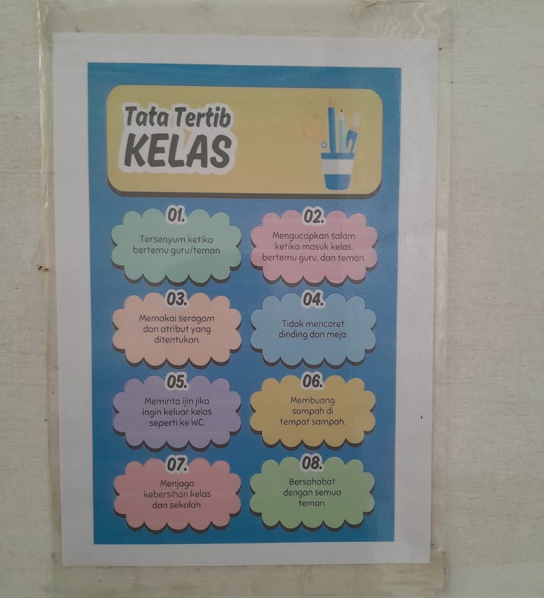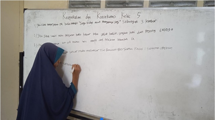Proses penyampaian tata tertib kelas, sebelumnya siswa diminta duduk tenang dan fokus memperhatikan