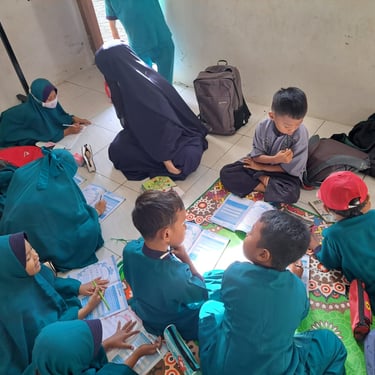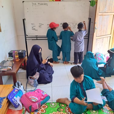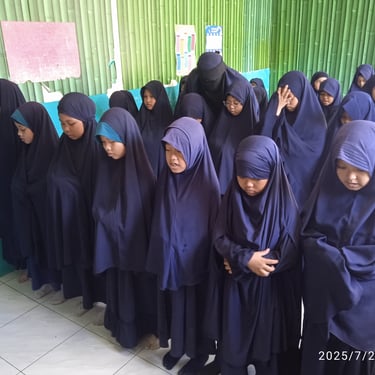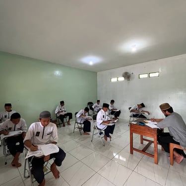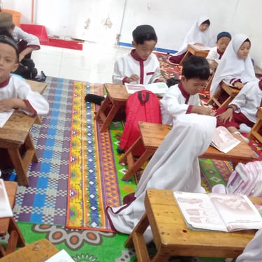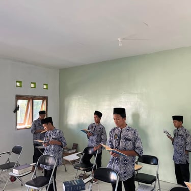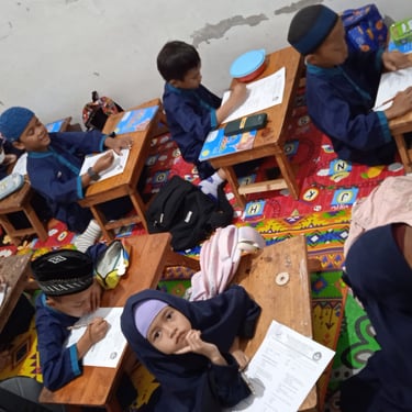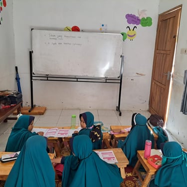 Kegiatan yang terdokumentasi pada foto menunjukkan suasana pembelajaran aktif dan kolaboratif, di mana peserta didik tampak tekun mengikuti kegiatan belajar, berdiskusi dalam kelompok, serta melaksanakan kegiatan keagamaan dan praktik keterampilan. Hal ini menggambarkan bahwa ruang kelas di PKBM Baitusyukur benar-benar menjadi ruang belajar multifungsi yang mendukung pembelajaran aktif, religius, dan inspiratif.